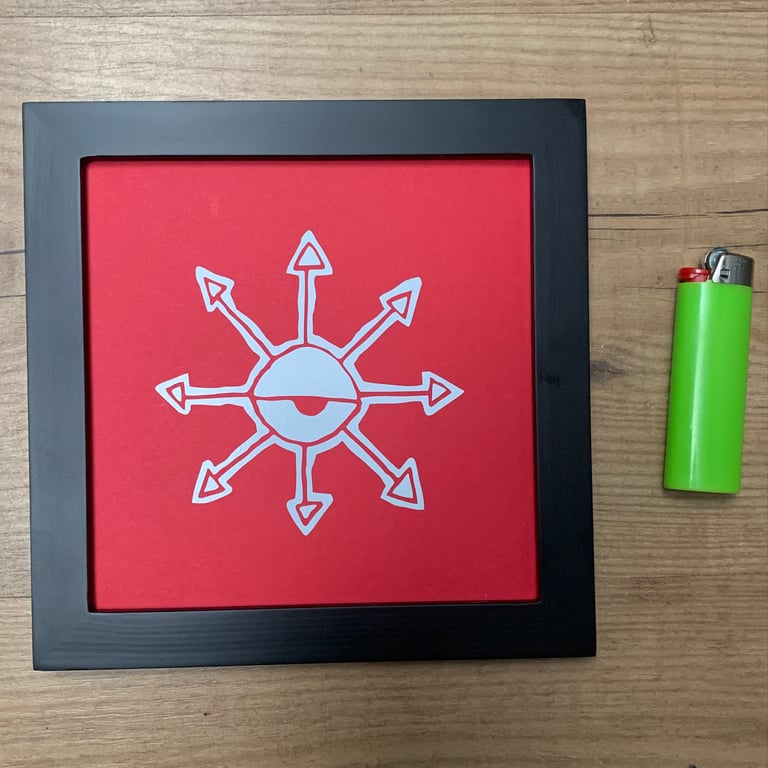 6 x 6. th symbol of Chaos Magick, an 8pointed star with th all-seeing eye in it's center. this is a design envisioned and created by th artist, iconic and visionary.