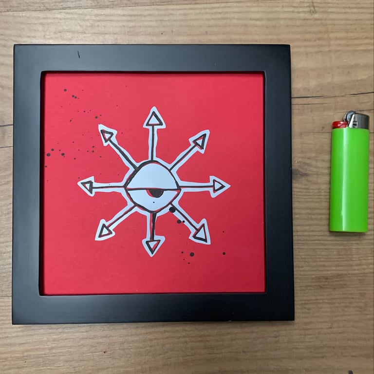 6 x 6. th symbol of Chaos Magick, an 8pointed star with th all-seeing eye in it's center. this is a design envisioned and created by th artist, iconic and visionary.