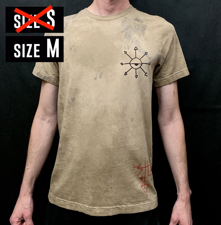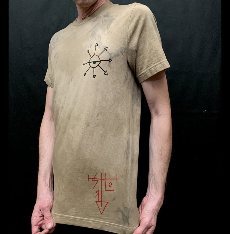Chaos Eye and Ruthless sigil T-shirt BLACK and RED on a shirt home-dyed with DEAD MANS FOOT mushroom