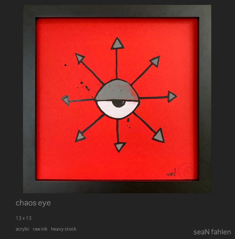 13 x 13 th symbol of Chaos Magick, an 8pointed star with th all-seeing eye in it's center. this is a design envisioned and created by th artist, iconic and visionary.