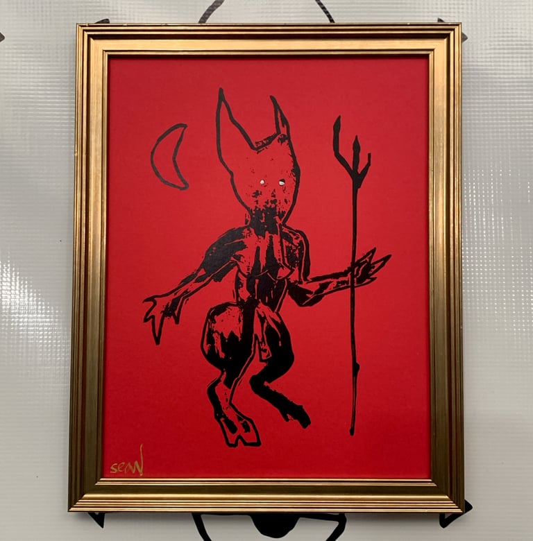 devil on red (hand augmented print) FRAMED