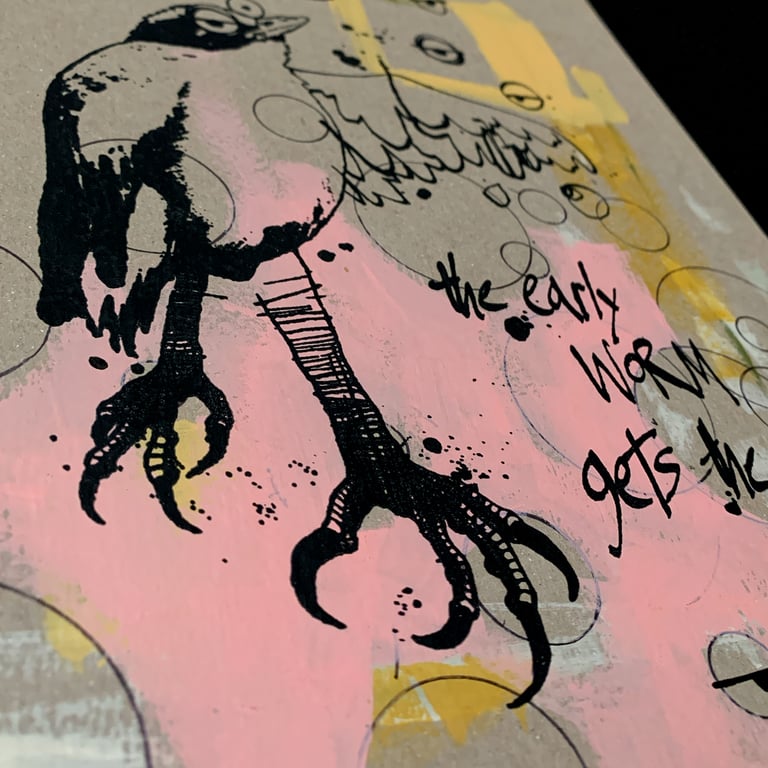 8.5x11 printers ink and acrylic paint on natural fiber board stock. hand screened and painted original print. one of a kind and hand signed by the artist.