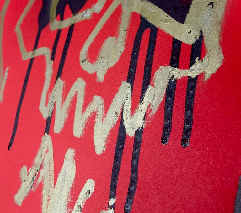 20x26 spray paint, solid paint stick on heavy crimson stock.