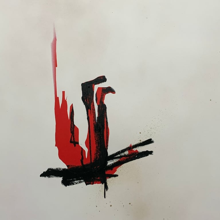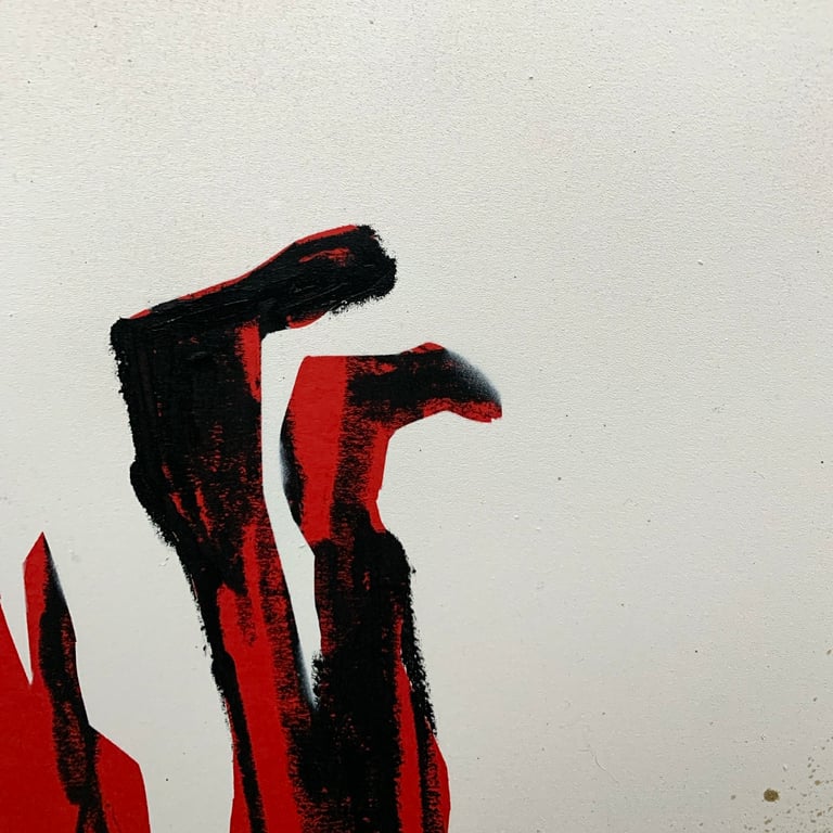 20 X 26 spray paint and solid paint stick on crimson heavy stock.