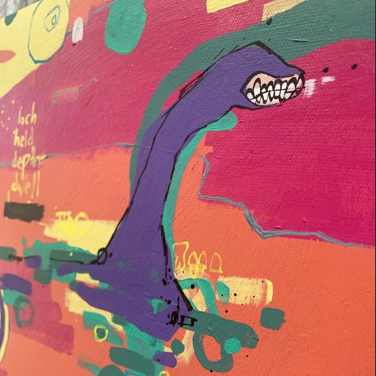 11 x 11 x .5 acrylic and raw ink on stretched canvas.