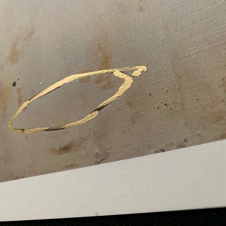 oh th ecstasy (linen print) 9x12 hand embellished GOLD