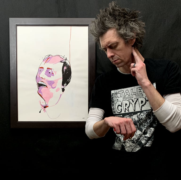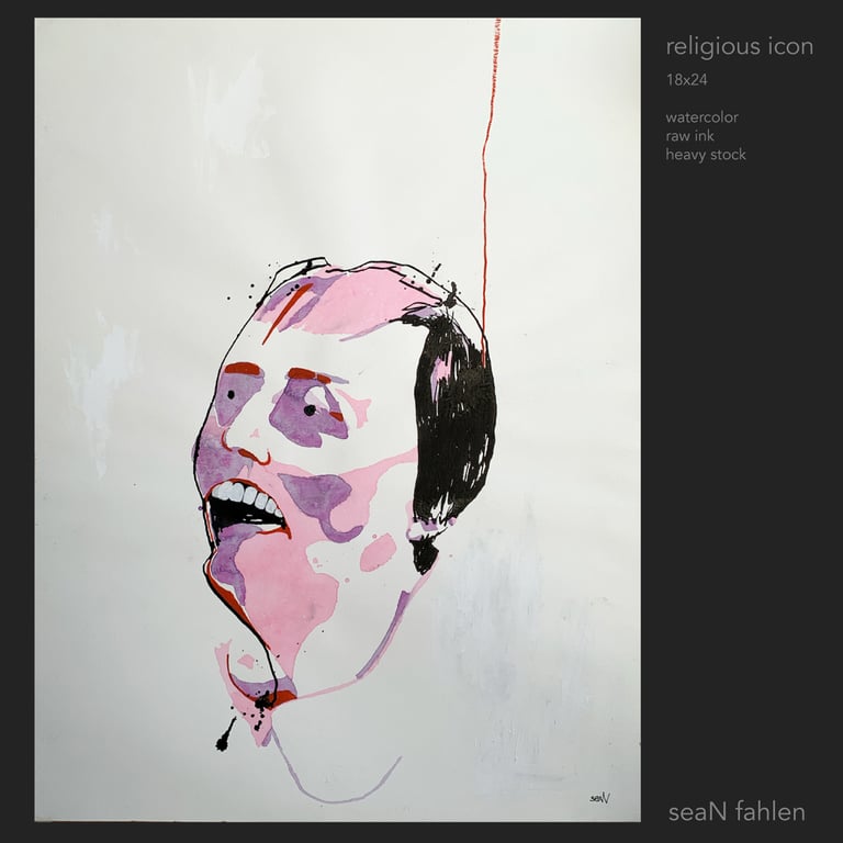 18x24 watercolor, acrylic and raw ink painting on heavy paper stock.
