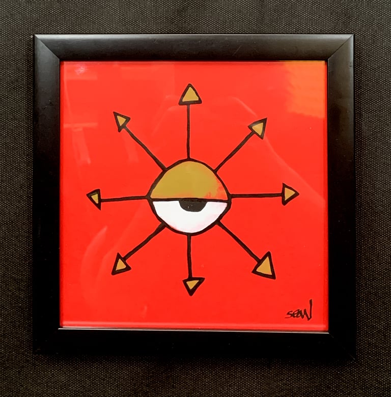 7.5 x 7.5 th symbol of Chaos Magick, an 8pointed star with th all-seeing eye in it's center. this is a design envisioned and created by th artist, iconic and visionary.
