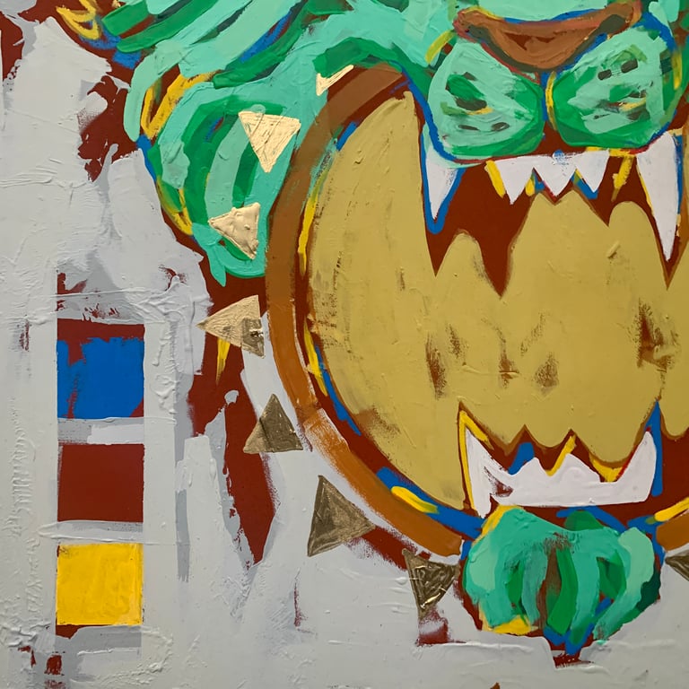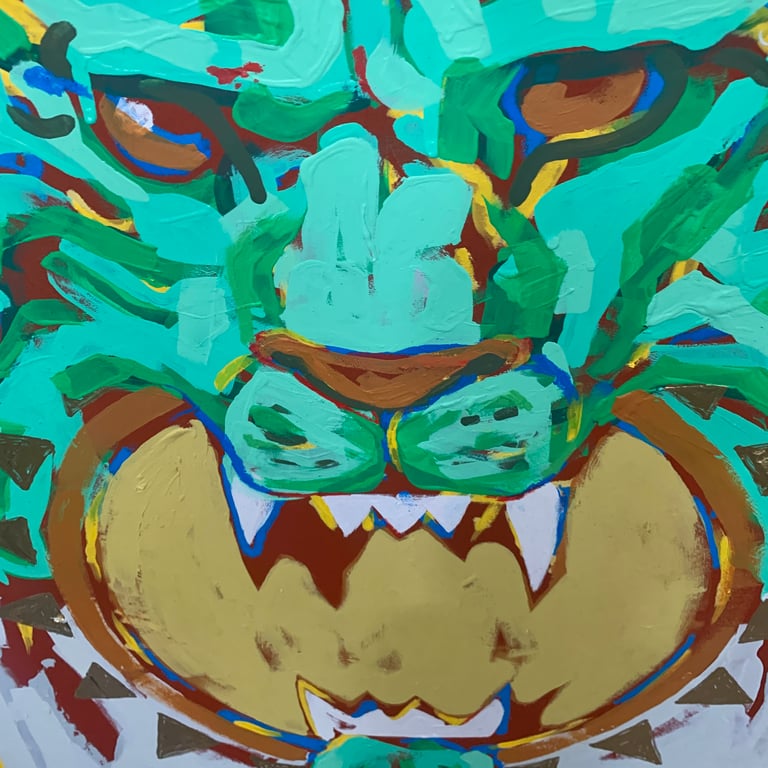 here reimagined as something closer to one a them lion face door knocker’s, as seen guarding th entrance to a creepy estate and/or spooky old mansion. you know, th kinda place you wouldn’t be surprised to find out they do freaky freaky rituals inside. “mmmmyes dear olde grandad, on mummy’s side, he had a laboratory of sorts on the third floor of the east wing. we don’t get up there much these days. and The Help; they have their little whispers, you know th common sort can be with their mmmsuperstitions.”