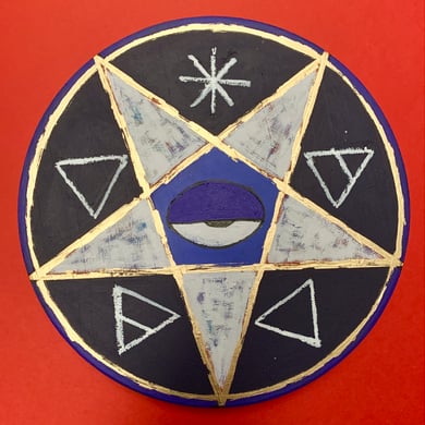 pentacle PURP/BLK/GRY on wood disk